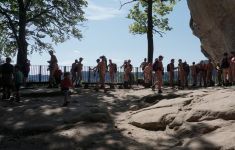 Le chemin suivant menait à l'"Enfer sauvage". Avant d'entrer dans l'"Enfer sauvage", quatre des 40 randonneurs ont décidé de choisir une route douce vers l'"Idagrotte". Les 36 autres ont fait quelques sections d'escalade sur de gros cailloux et des sentiers étroits, ce qui a nécessité beaucoup de grands pas et de force. En chemin, ils ont rencontré des vues impressionnantes et plusieurs "vraies" pierres d'escalade.