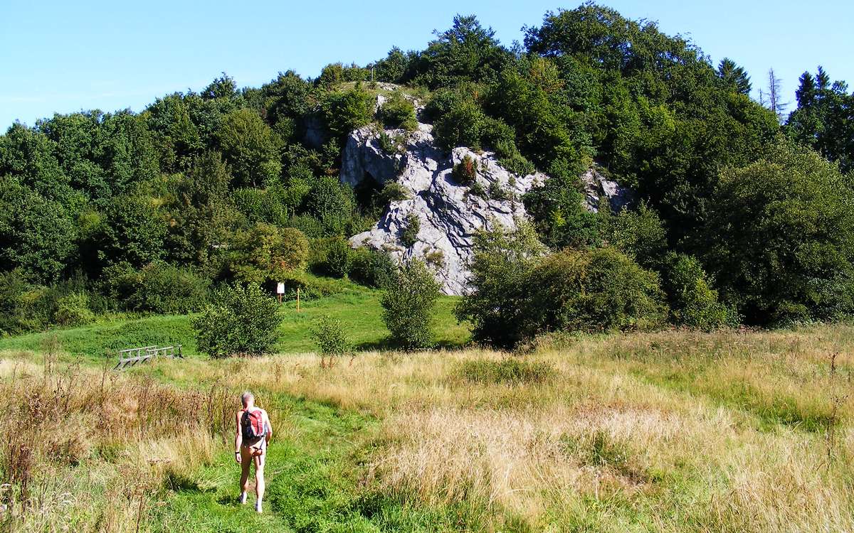 La série des Sauerland-Nacktwanderungen s'est rapidement poursuivie. Après une randonnée pluvieuse en juillet, nous sommes partis fin août à l'est de Warstein, près de Kallenhardt, vers la tour Lörmecke, non sans avoir visité la grotte « Hohler Stein », qui a été utilisée par les chasseurs depuis le paléolithique au moins jusqu'à l'âge du fer pré-romain.