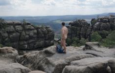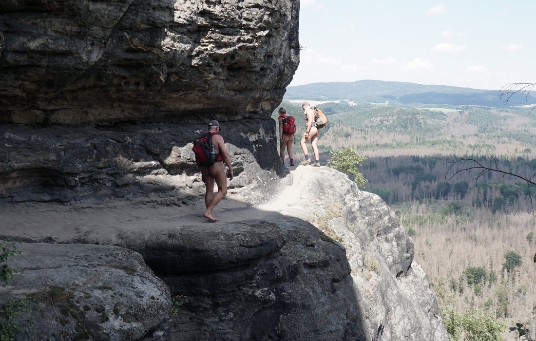 Le dimanche a marqué la fin de la série de quatre jours de randonnées nues, au cours desquelles le groupe de randonneurs a fait connaissance avec d'anciennes retraites de barons voleurs au 15ème siècle. La veille au soir, Martin avait expliqué ses découvertes à leur sujet et leurs liens avec la famille noble tchèque des Berks de Dubá.