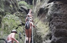 Le chemin suivant menait à l'"Enfer sauvage". Avant d'entrer dans l'"Enfer sauvage", quatre des 40 randonneurs ont décidé de choisir une route douce vers l'"Idagrotte". Les 36 autres ont fait quelques sections d'escalade sur de gros cailloux et des sentiers étroits, ce qui a nécessité beaucoup de grands pas et de force. En chemin, ils ont rencontré des vues impressionnantes et plusieurs "vraies" pierres d'escalade.