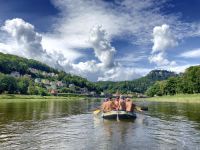 La journée est devenue chaude avec de nombreuses pauses baignades et de belles rencontres avec de nombreux groupes, familles ou couples dans les bateaux sur l'Elbe et bien d'autres sur les rives et sur les bateaux. Peu avant l'arrivée du ferry-boat de la station thermale de Rathen, la tension montait de savoir si le magasin de glace situé sur la piste cyclable de l'Elbe aurait ouvert avec "la meilleure glace avant l'Italie" (c'est leur slogan publicitaire). Nous avons eu de la chance et avons pu profiter des friandises froides à nouveau nus.