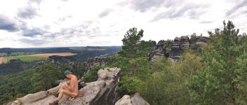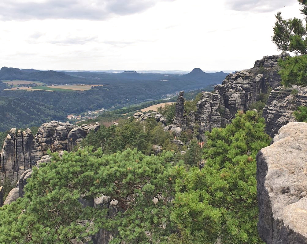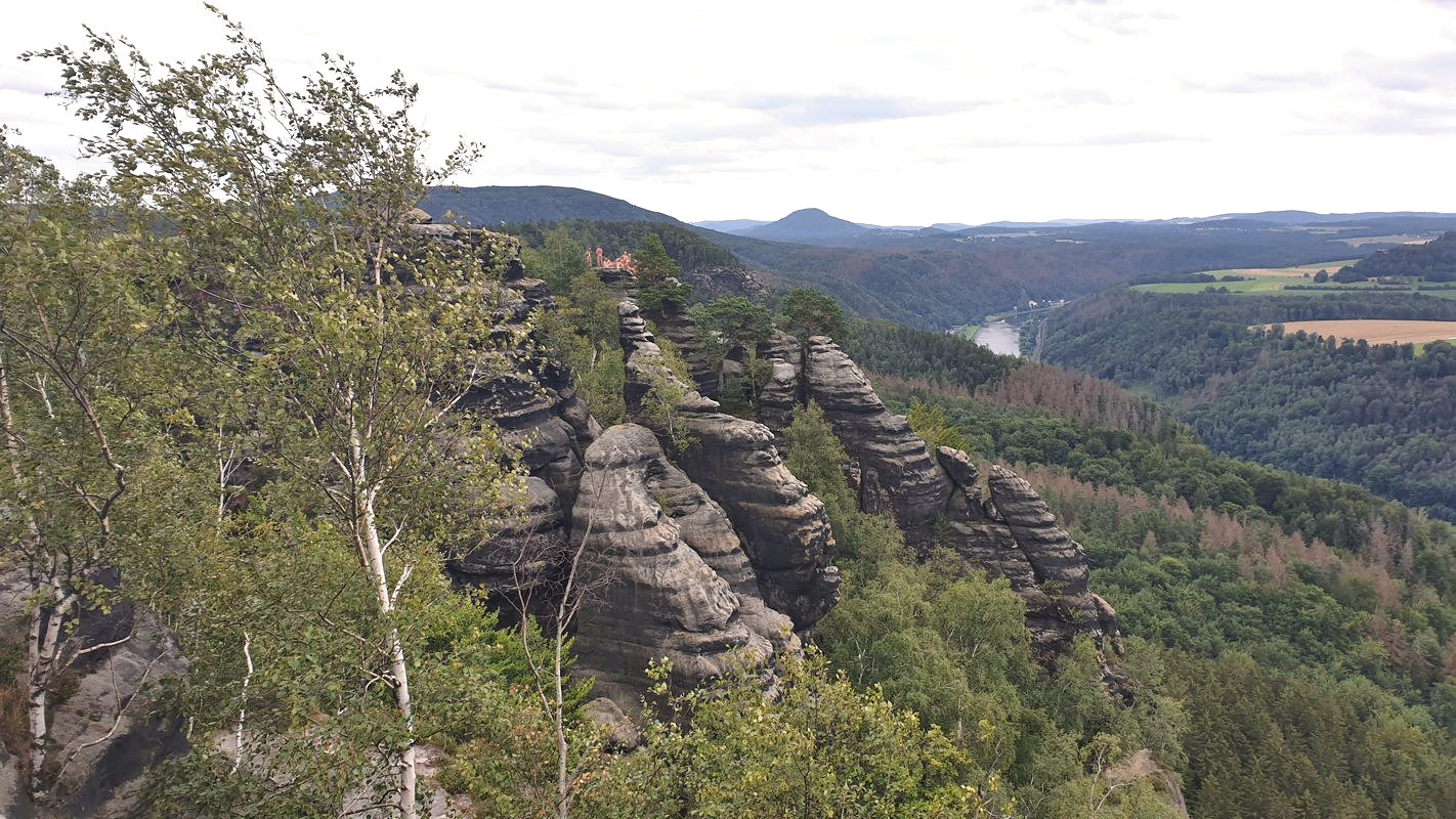 La randonnée a commencé par une montée régulière, suivie - après une dernière vue spectaculaire à 270 degrés, que seuls 4 ou 5 des randonneurs* voulaient voir - d'une longue descente en partie raide, qui a été menée par des escaliers aux points les plus raides. Après une dizaine de kilomètres, vous pourrez vous rendre au restaurant "Zur Schloßbastei" à Bad Schandau pour y prendre un délicieux rafraîchissement.