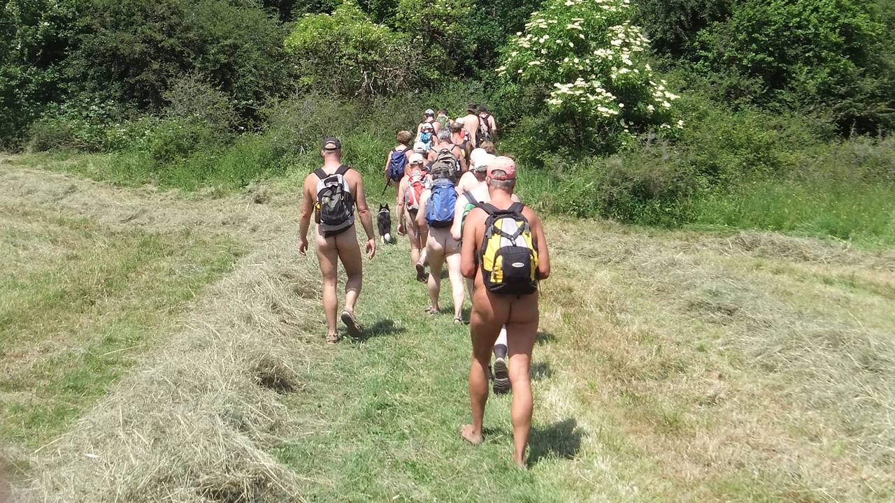 Ensuite, la randonnée d'inauguration a eu lieu, qui a également été accompagnée par les reporters photo pendant un bon moment. L'initiateur initial de la montée naturiste, Heinz Ludwig, du camping de Dankerode, s'est entre-temps retiré du projet, ce qui s'expliquerait notamment par les réserves de ses hôtes du camping ancestral.