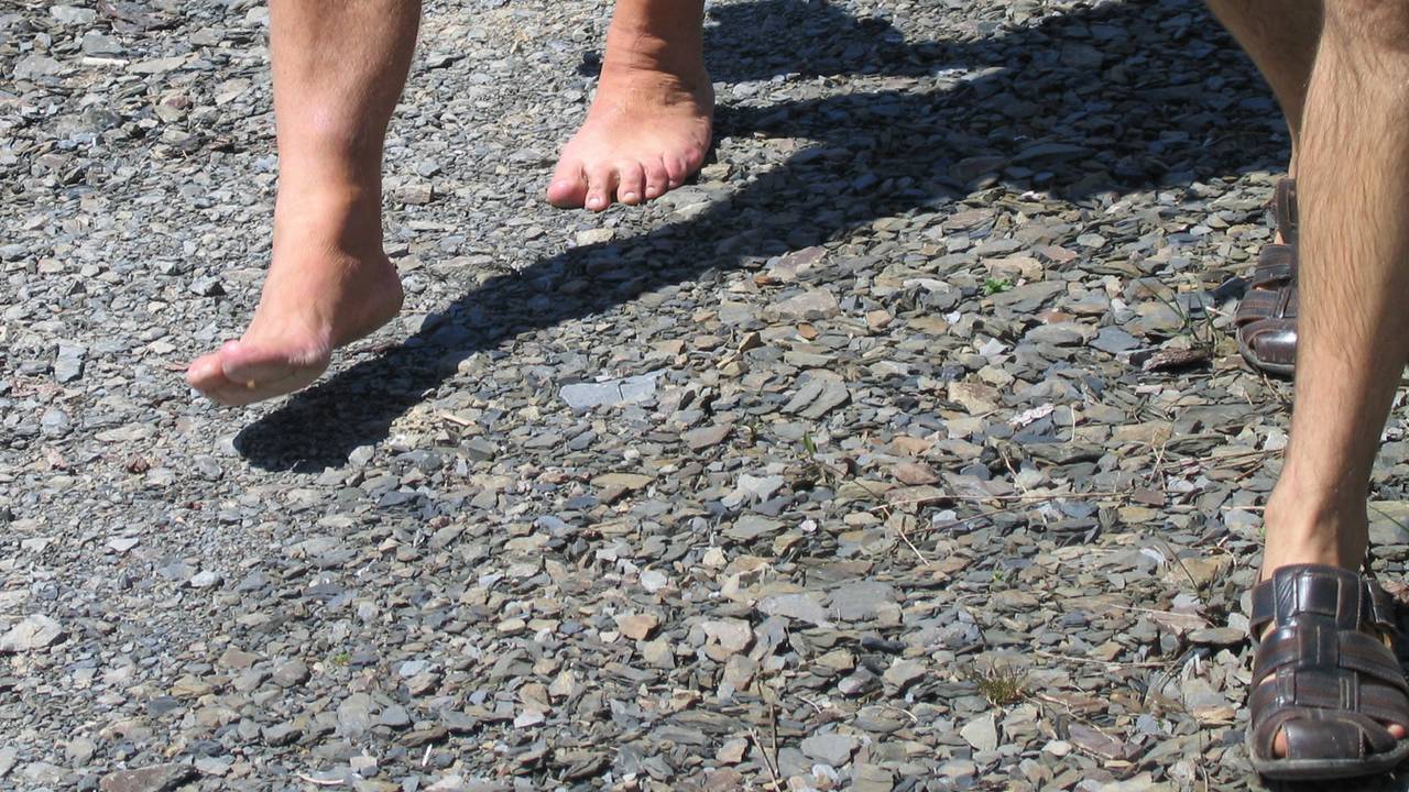 Ces trois personnes sont les seules qui préfèrent marcher avec des vêtements, tandis que le nombre de ceux qui marchent pieds nus "de la couronne à la semelle" s'élève à près d'une douzaine. Et ce, même sur des chemins qui, avec leurs graviers grossiers, ne pouvaient que décourager le débutant pieds nus !