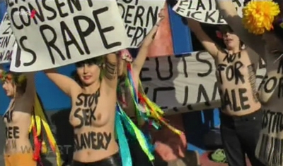 Les femmes du mouvement FEMEN organisé au niveau international soutiennent leur protestation contre les institutions ou les établissements lors de leurs actions en se mettant torse nu ainsi qu'en faisant preuve de violence passive. Elles aussi ont généralement été pourchassées, capturées et emmenées par des policiers. Leur objectif est cependant régulièrement une protestation concrète contre des actes tels que la violation des droits ou l'oppression.