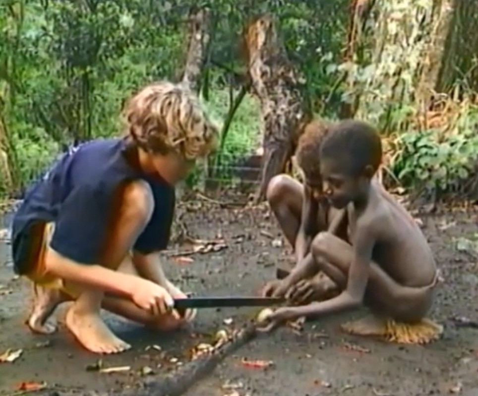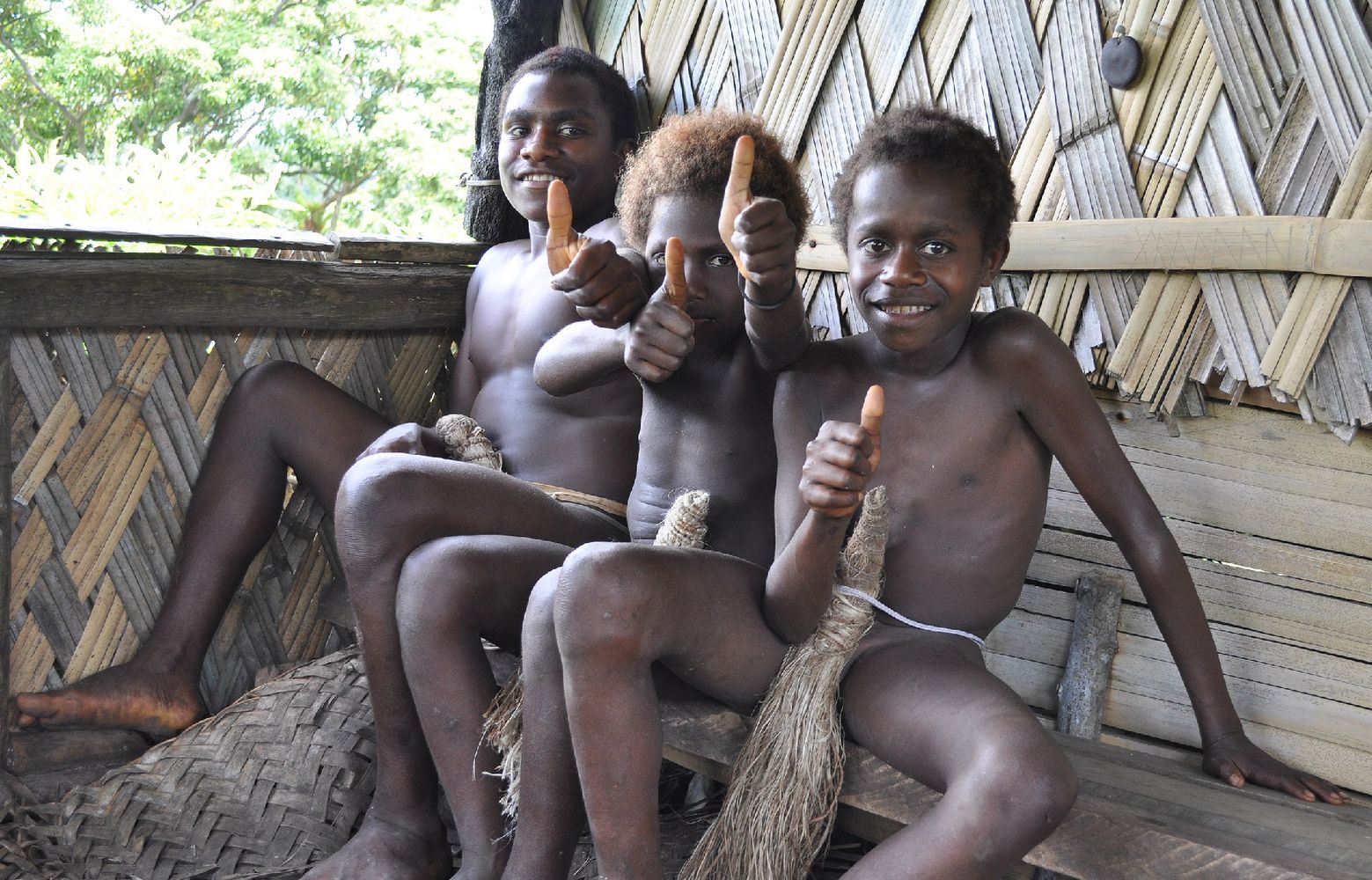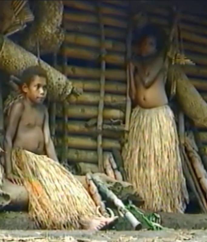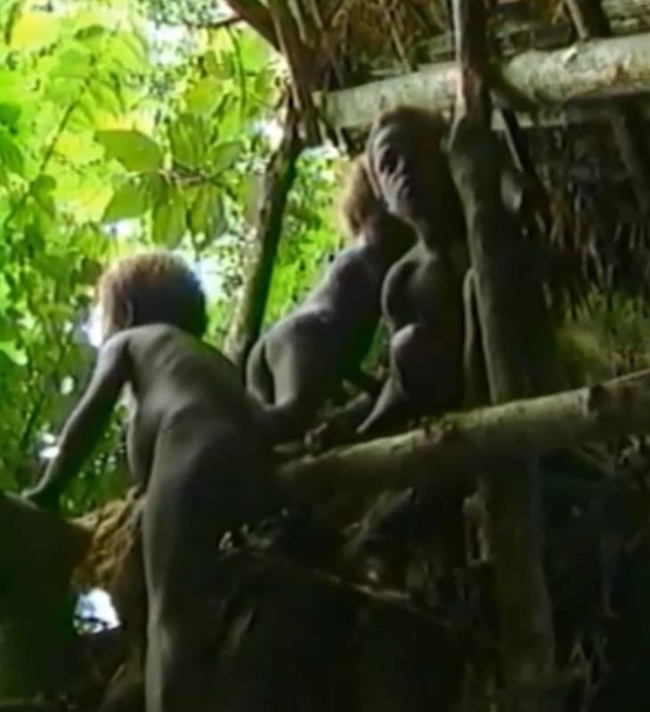 Les garçons de France ont rendu visite aux garçons fraîchement circoncis de la tribu " description="...dans la cabane dans les arbres, où ils restent jusqu'à ce que les blessures de la circoncision soient guéries (photos 20-21). Les filles et les femmes portent une jupe en raphia.