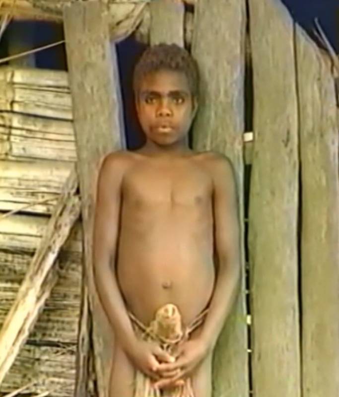 Dans les mers du Sud, sur l'île de Tanna (appartenant à Vanuatu, Nouvelles Hébrides), un peuple vit encore aujourd'hui son culte traditionnel, dans lequel la vie des hommes en unité et en harmonie avec la nature joue un rôle central. Ici, les hommes portent le "namba", une enveloppe pénienne tressée en raphia. Le volume de cette construction est assez important sur certains exemplaires en raison des nombreuses couches de raphia enroulées, de sorte que les explorateurs européens ont là aussi supposé que l'arrière-plan était l'accentuation voulue du pénis, comme cela était maintenu en Europe à la fin du Moyen Âge avec l'incorporation d'une capsule pénienne saillante dans les pantalons. Mais c'est faux ! Les hommes portent leur couverture en raison de la pudeur génitale.