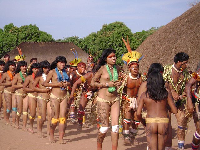 La tribu des Yawalapiti vit encore aujourd'hui sur le Xingu, un affluent de l'Amazone. Une fois par an, ils célèbrent une fête en l'honneur des défunts, pour laquelle les garçons de moins de 10 ans tuent des poissons avec des arcs et des flèches. Leur vêtement est jusqu'à aujourd'hui un pagne, qui est toutefois élargi sur les côtés et à l'arrière comme une ceinture, et sur le devant duquel est fixé un très maigre pagne, plutôt symbolique, fait de quelques fibres textiles.