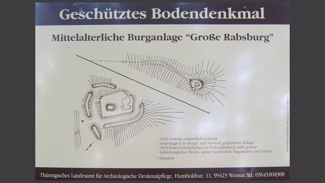 Nous avons visité le Große Rabsburg, vestige d'un château de brigands sur le Raubberg, délabré depuis le 13e siècle et en grande partie détruit avec la construction de la ligne ferroviaire Weimar-Gera en 1873. Non loin de là se trouve l'usine de papier avec sa propre gare ferroviaire. Ziegemühle et Bockmühle, deux moulins à eau, sont conservés en bon état, et un modèle de four à poix a été reconstitué et reconstruit d'après les découvertes originales.
