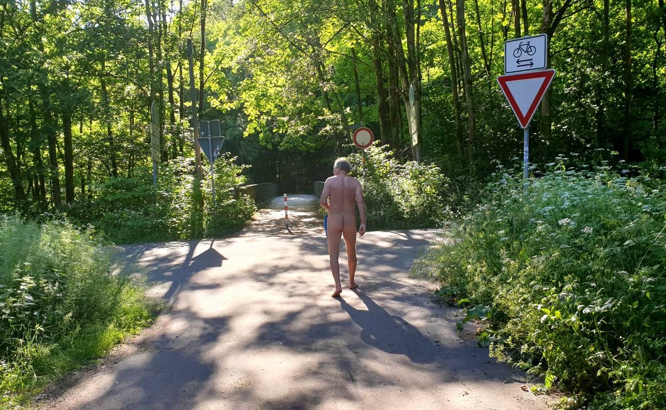 Par un dimanche ensoleillé de juin, deux randonneurs nus ont choisi le Bergisches Land comme destination. Cette fois-ci, à environ 5 km de Wuppertal-Elberfeld, ils ont choisi un itinéraire de 16 km de long dans une zone forestière des deux côtés de la Wupper. Les 640 mètres d'altitude cumulés témoignent que le Bergisches Land mérite bien son nom : on peut facilement trouver des montées claires pour s'entraîner et se laisser aller dans les descentes - avec prudence et des freins bien dosés.