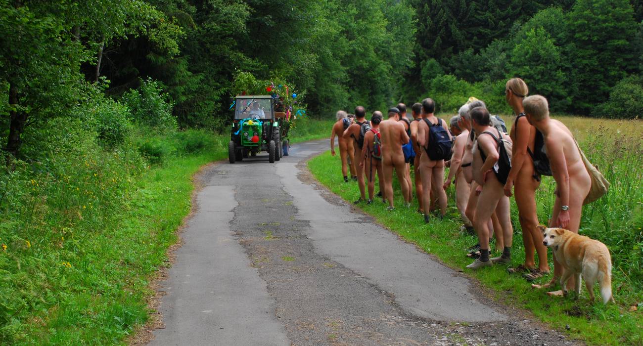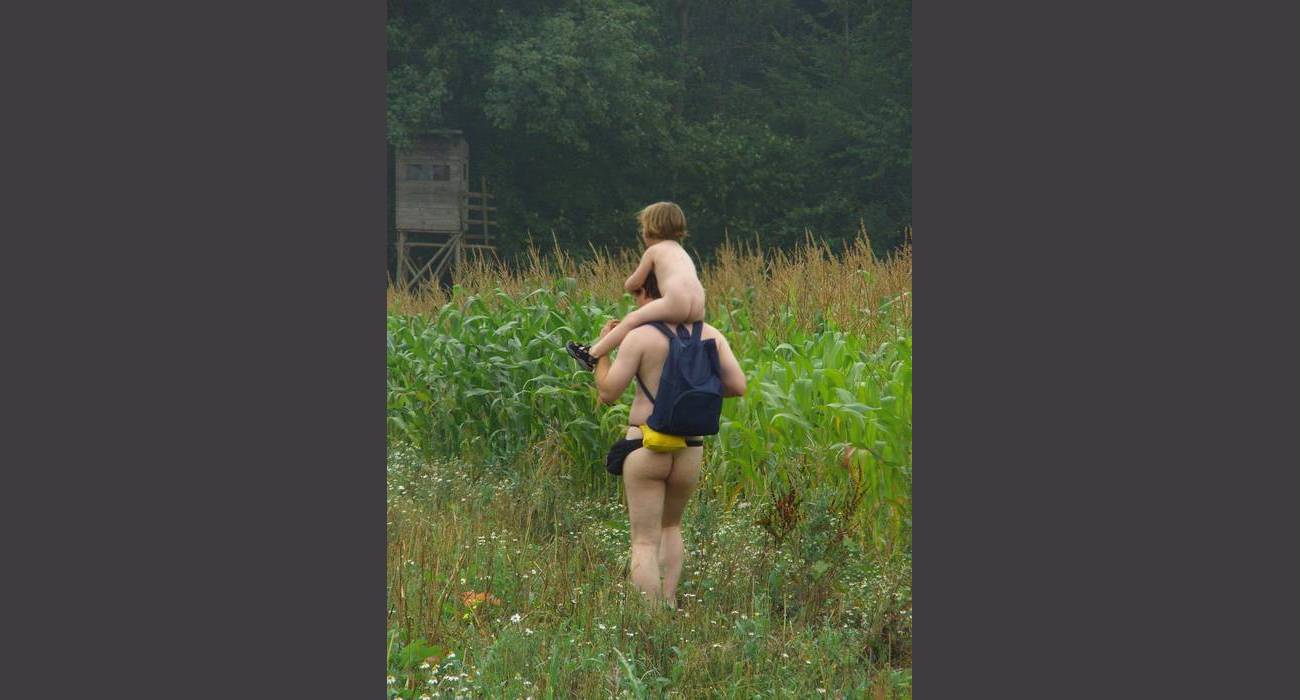 Regenmacher avait de nouveau invité à une randonnée nue de fin d'été dans l'Eifel. 27 participants sont venus, dont un garçon d'un an, qui ne savait pas encore marcher et qui était porté par sa mère, et sa grande sœur, qui avait déjà 4 ans et qui a parcouru la moitié des 15 km sur ses propres jambes. Mais elle était heureuse de trouver quelques épaules sur lesquelles elle était portée.
