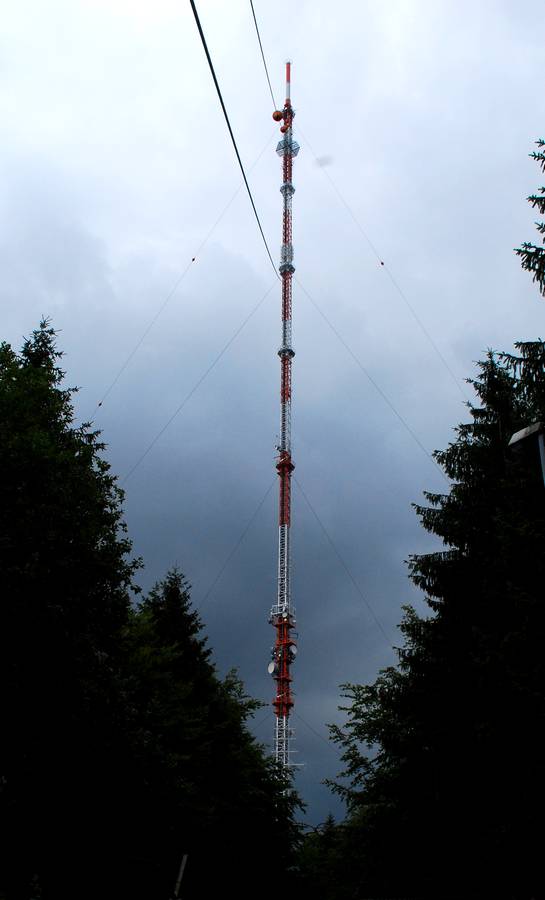 Nous avons également passé le mât de transmission de 300 m de haut du WDR, qui était tombé dans le gel quelques années auparavant, car les cordes de maintien étaient devenues trop tendues en raison du froid de la nuit et la tension était telle que le mât s'est cassé et est tombé dans la forêt. Maintenant, il était de nouveau debout.