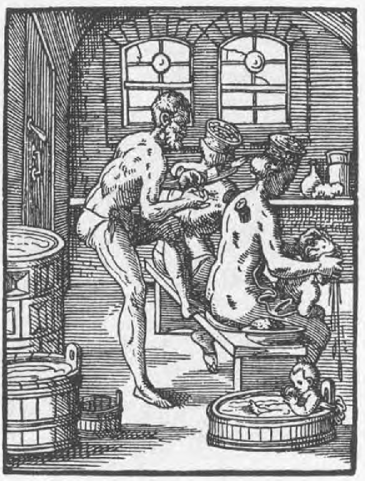 Il était d'usage que les membres du sexe opposé se tiennent à l'écart du baigneur, mais l'hôte/l'hôtesse assistait au bain en présentant des ingrédients, en vidant la cruche d'eau du bain sur le dos du baigneur ou en lui tendant un linge sec à la fin du bain.
