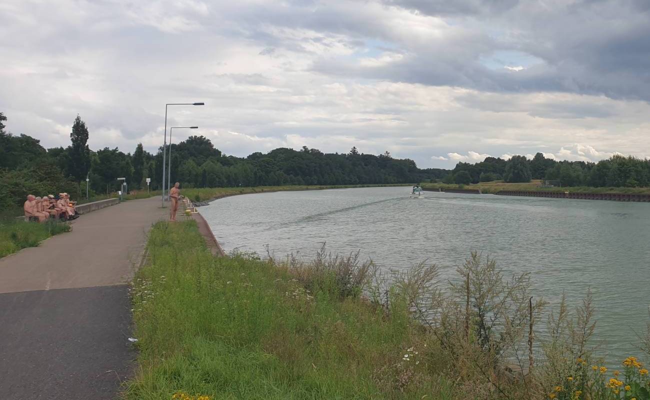 La dernière partie de la randonnée longeait le canal Dortmund-Ems sous le soleil, ce dont certains ont bien sûr profité pour se baigner. La conclusion facultative était une visite du "Jardin botanique Loismann", où le séquoia est le représentant le plus connu des plantes exotiques. Mais en plus, il y a de nombreuses autres attractions botaniques à admirer - et aujourd'hui, en plus, l'empressement des randonneurs nus à apprendre.