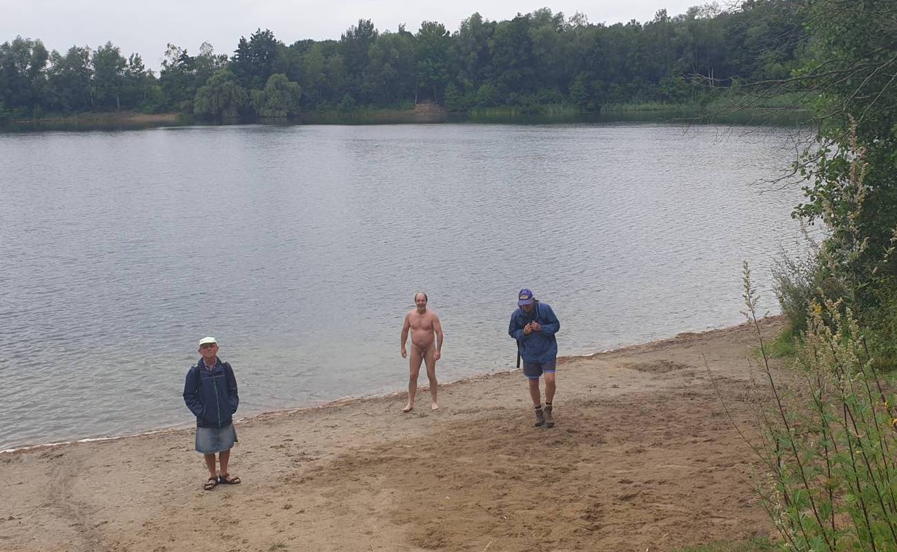 Entre-temps, le groupe de cyclistes avait terminé son tour de 50 km à travers les villages autour de Nordwalde et Altenberge. En chemin, les cyclistes nus ont rencontré toutes sortes de personnes de bonne humeur qui, comme toujours, les ont salués de manière amicale et leur ont rendu la pareille ; certains automobilistes ont également klaxonné et souri. Après environ 25 km, il y avait une pause plus longue dans un refuge. La pluie prévue par le service météorologique ne s'est pas matérialisée dans un premier temps. Après environ 3 heures, le groupe de cyclistes a rencontré les randonneurs qui faisaient déjà une pause au lac.