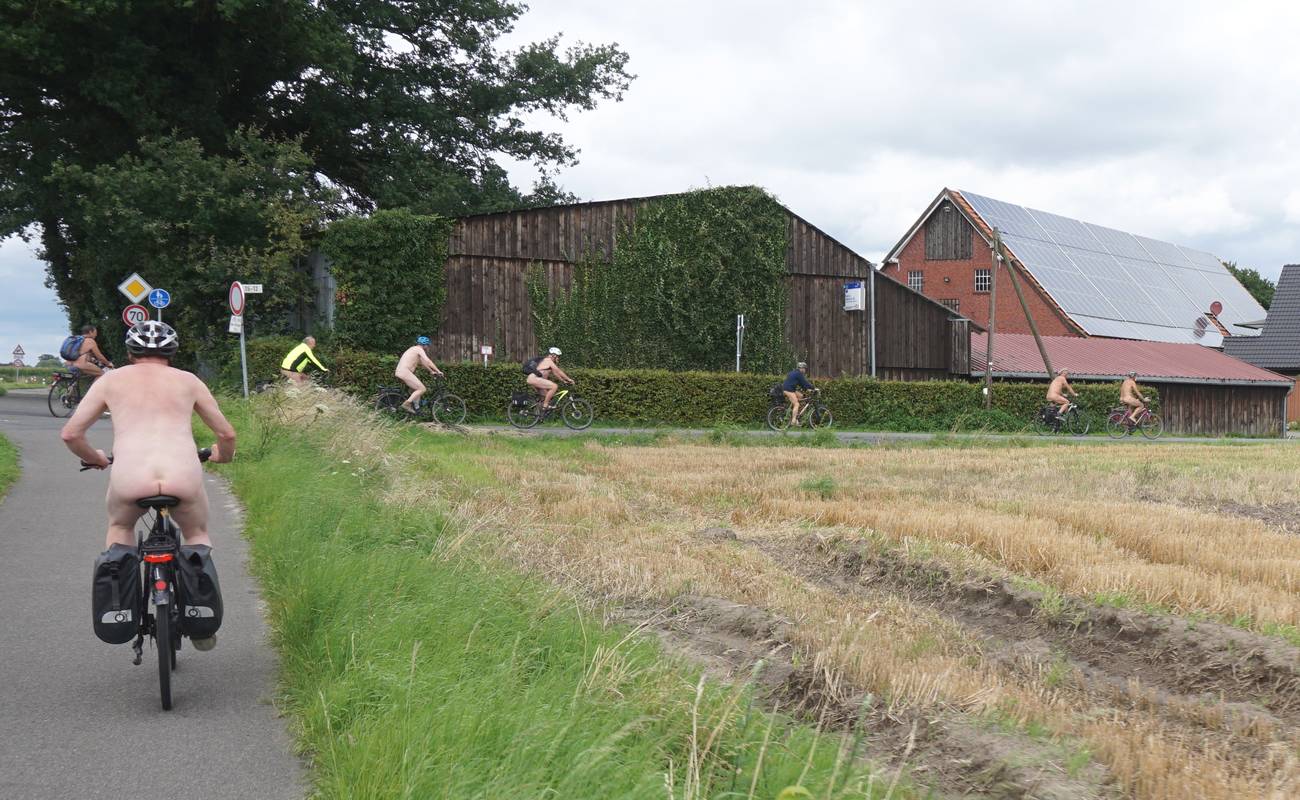 Un parking dans la campagne près de Metelen a été le point de départ des cyclistes et des marcheurs nus qui ont voulu affronter à nouveau les caprices de la météo de l'été 2021, mardi. L'air initial de 17° a de nouveau incité la plupart des participants actifs à commencer à se vêtir - en particulier les cyclistes, qui ajoutent généralement leur propre vitesse à celle du vent.