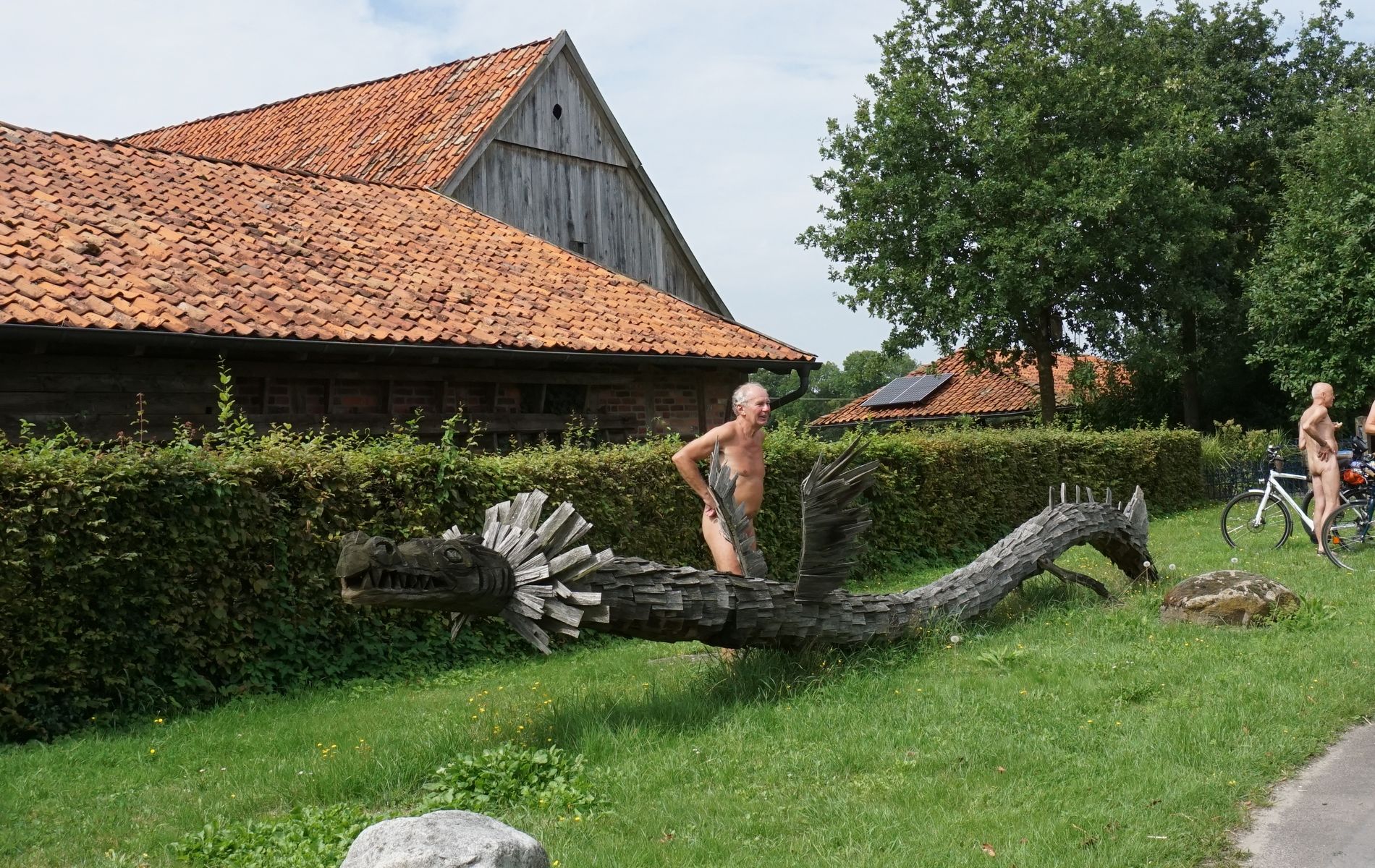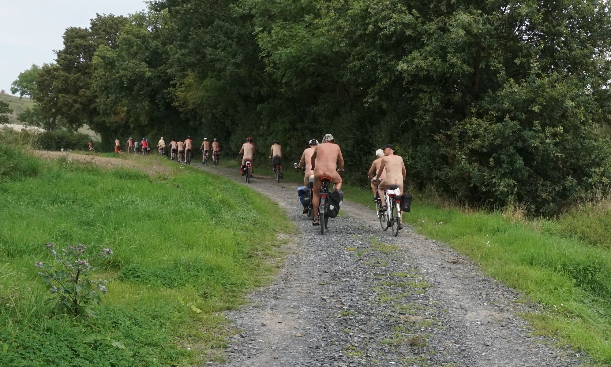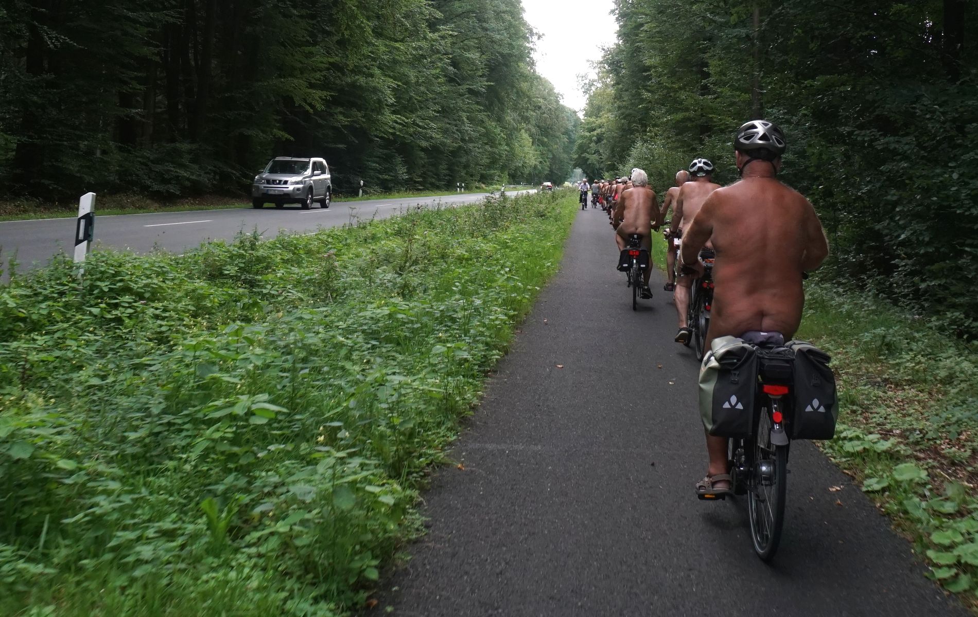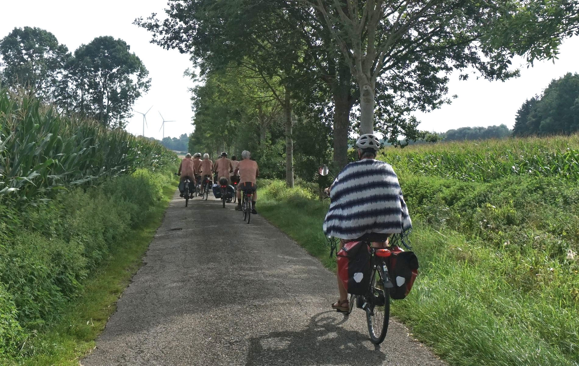 Entre Nordwalde et Emsdetten, le parcours cycliste s'étendait sur une cinquantaine de kilomètres que dix-huit naturistes se réjouissaient de parcourir. Un soleil filtré par les nuages seulement par intermittence et des températures comprises entre 23 et 26 degrés ont favorisé le bien-être grâce à un vent de circulation constant, mais aussi la nécessité d'un revêtement avec une protection solaire.