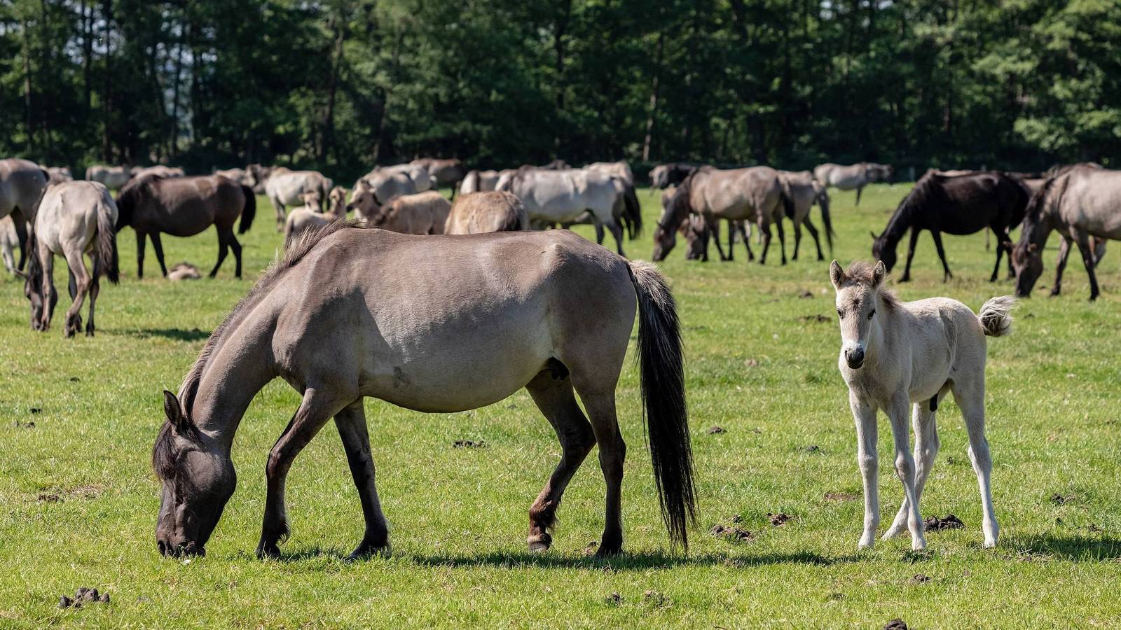 Il n'y a encore eu que des attaques de loups de petite taille sur le site, et aucun loup n'était présent lors de la visite des naturistes au parc animalier. Les chevaux donnaient également l'impression d'être très calmes et pas du tout sauvages, et la garde forestière Friederike Rövekamp a informé les visiteurs en détail sur les nouvelles du troupeau. - D'ailleurs, des visites guidées sont également proposées aux visiteurs habillés